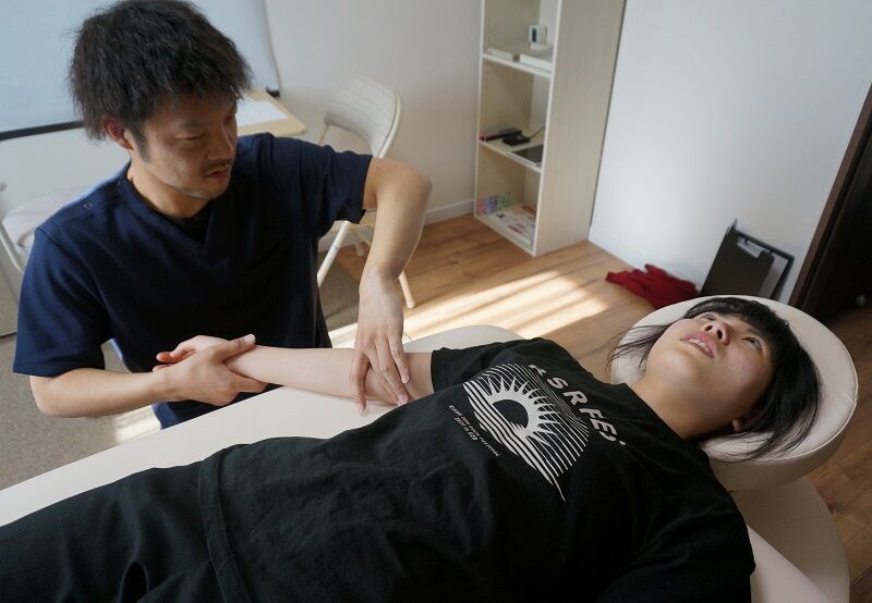 いました。なので、腕をほぐすよう施術すれば、肩のこわばりが
