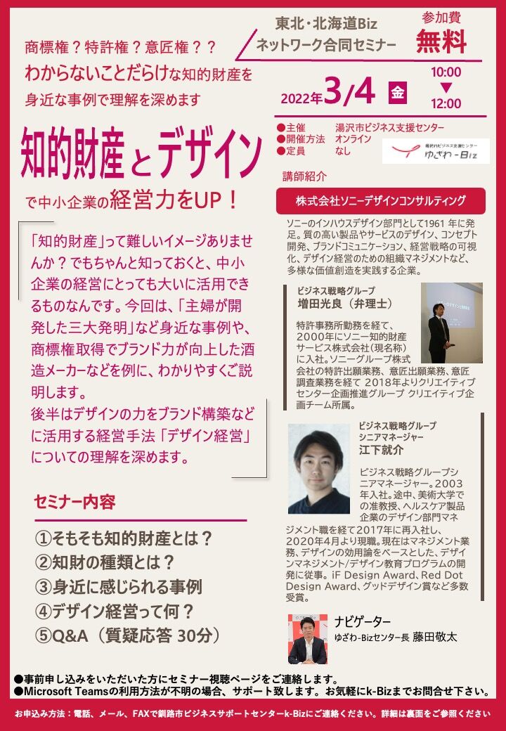 【3/4(金)知的財産とデザインで中小企業の経営力をUP!セミナー】