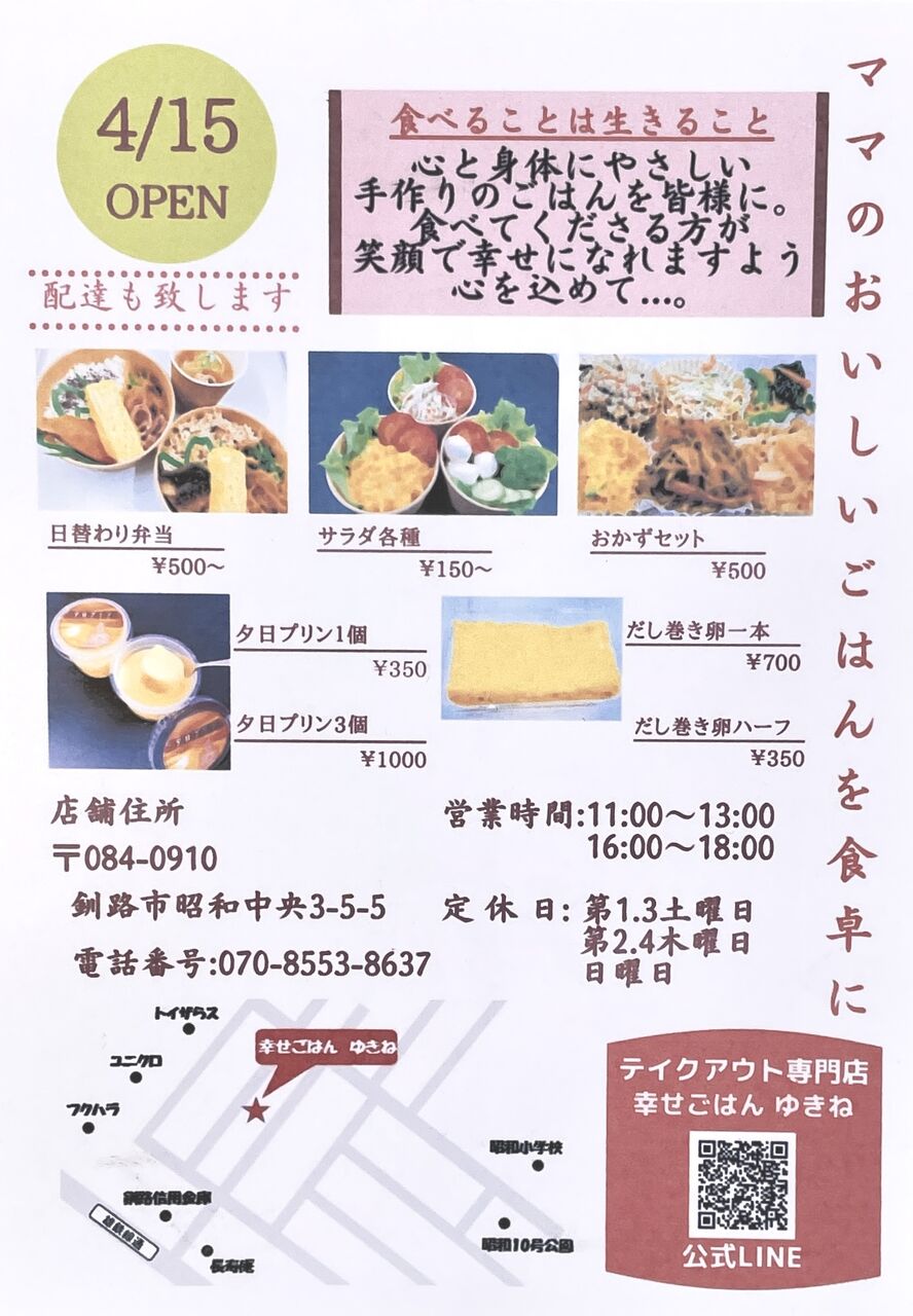 「幸せごはん ゆきね」という、テイクアウト専門お弁当・お惣菜のお店を